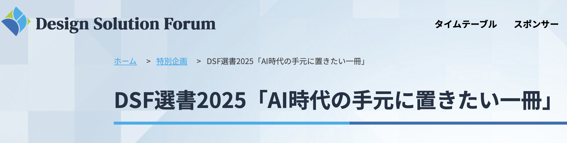 Design Solution Forumでは、今年も人気企画「DSF選書」を開催します。講演者や実行委員、そして出版社の皆さんが「これは読んでほし